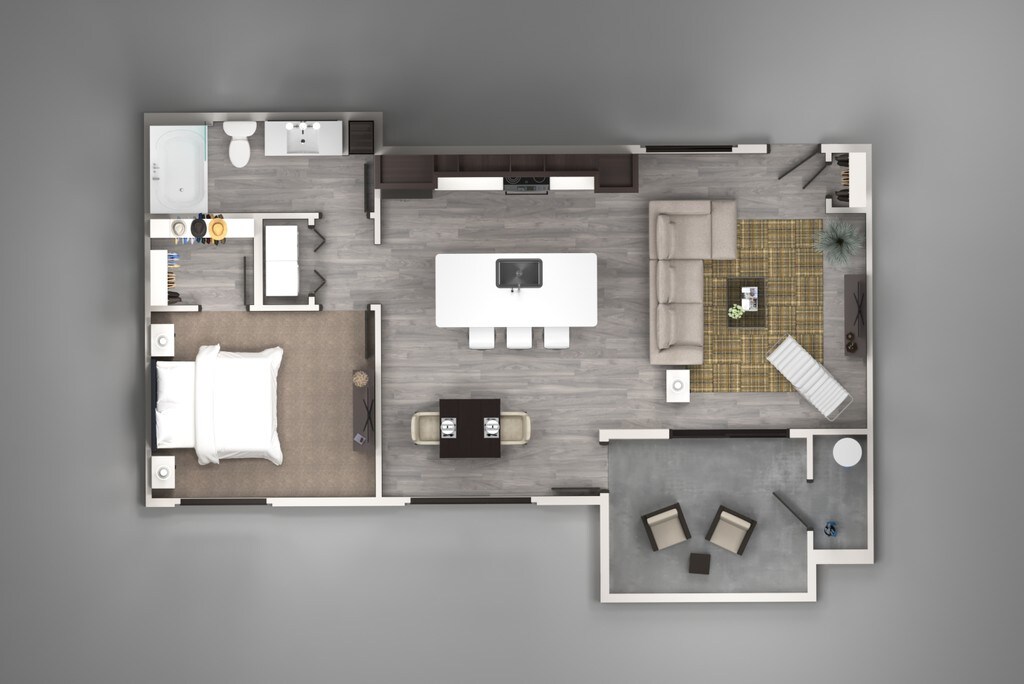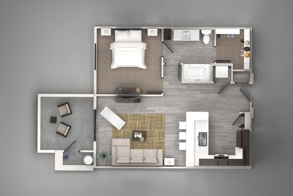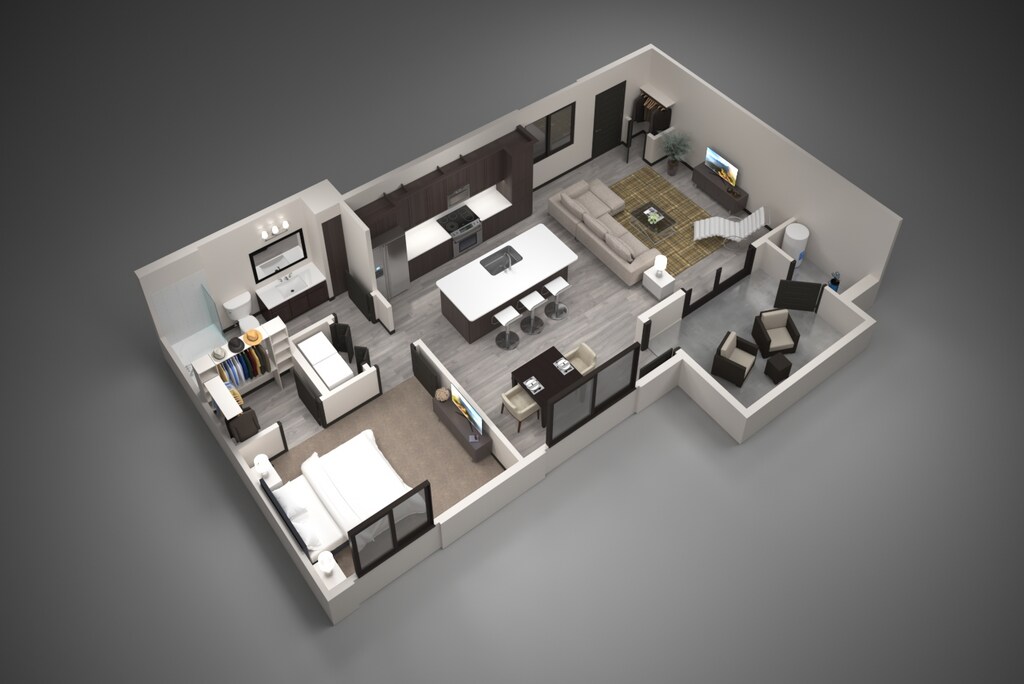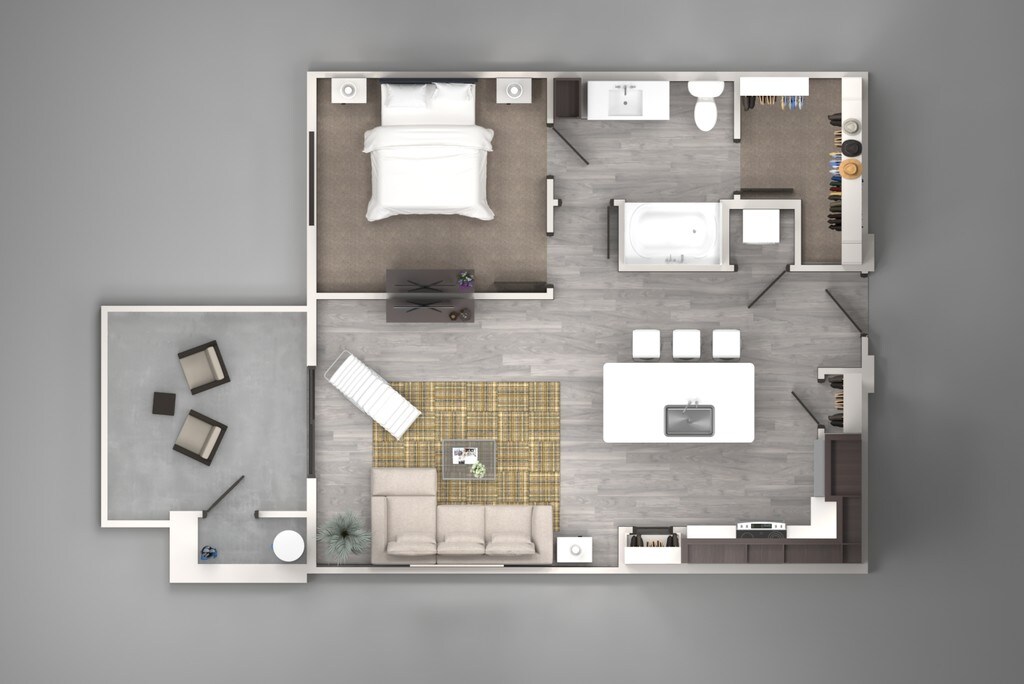 1 Dormitorio, 1 Baño, 809 pies²Disponible AhoraGalería del Modelo