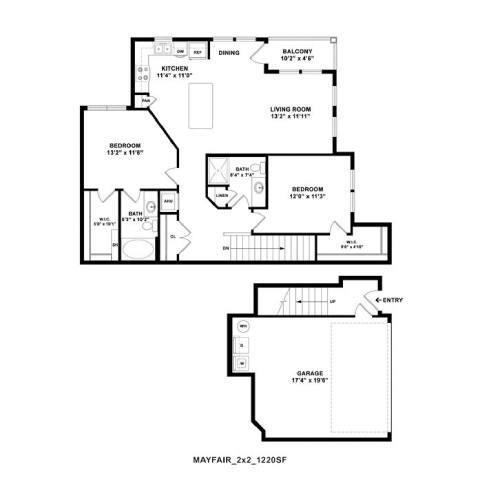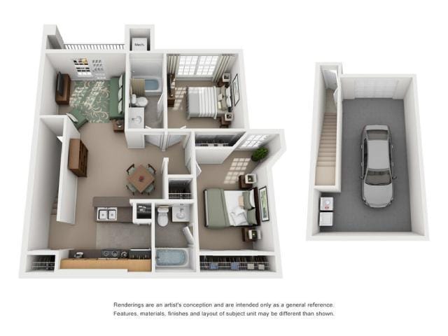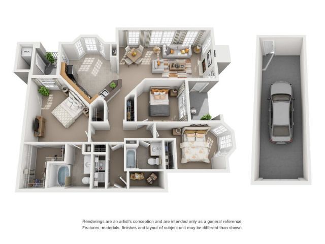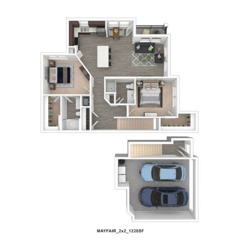 2 Dormitorios, 2 Baños, 1055 pies²Galería del Modelo