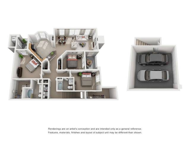 2 Dormitorios, 2 Baños, 1010 pies²Galería del Modelo