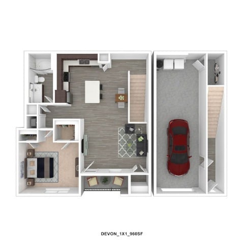 Phase 2 - Devon - Plano 3 Unidad de apartamento: 1887GWModelo de apartamento: 1 Bed, 1 bath$1,8751 Dormitorio, 1 Baño, 960 sq ftDisponible April 9, 2026Phase 1 - Carlo