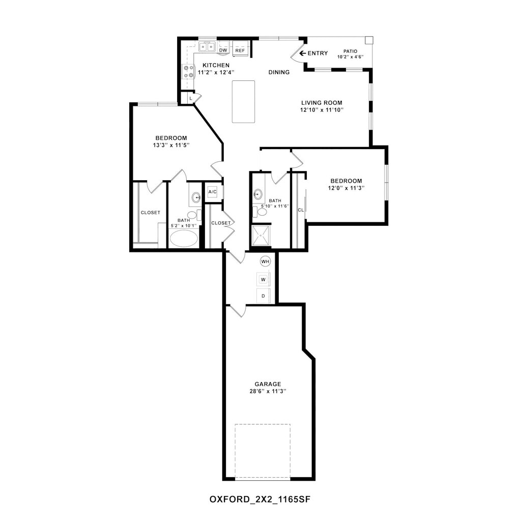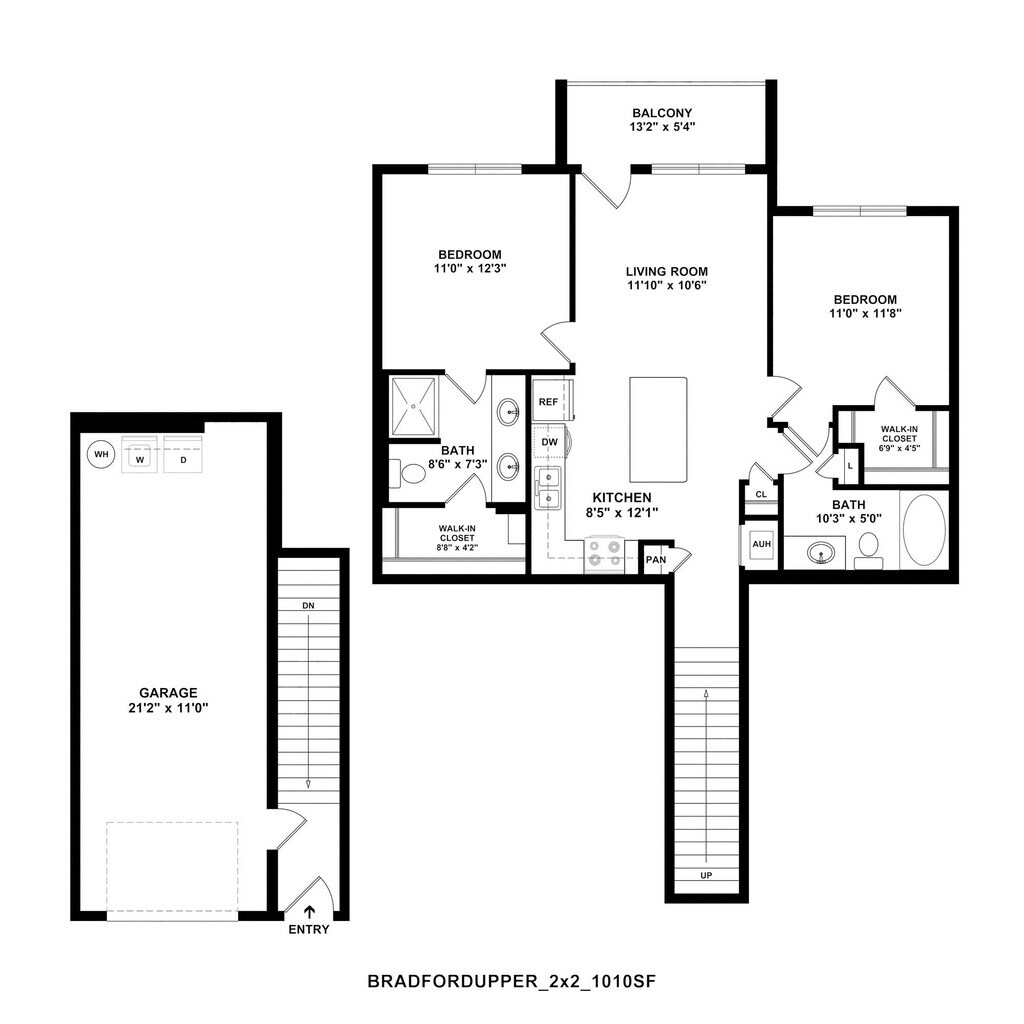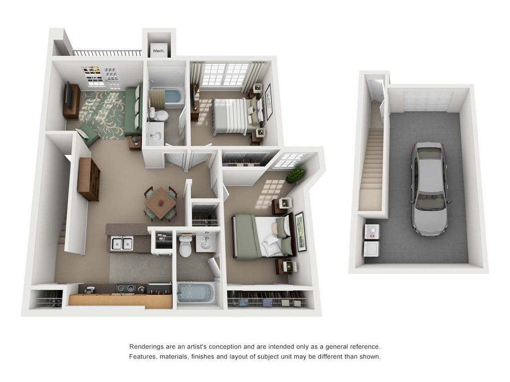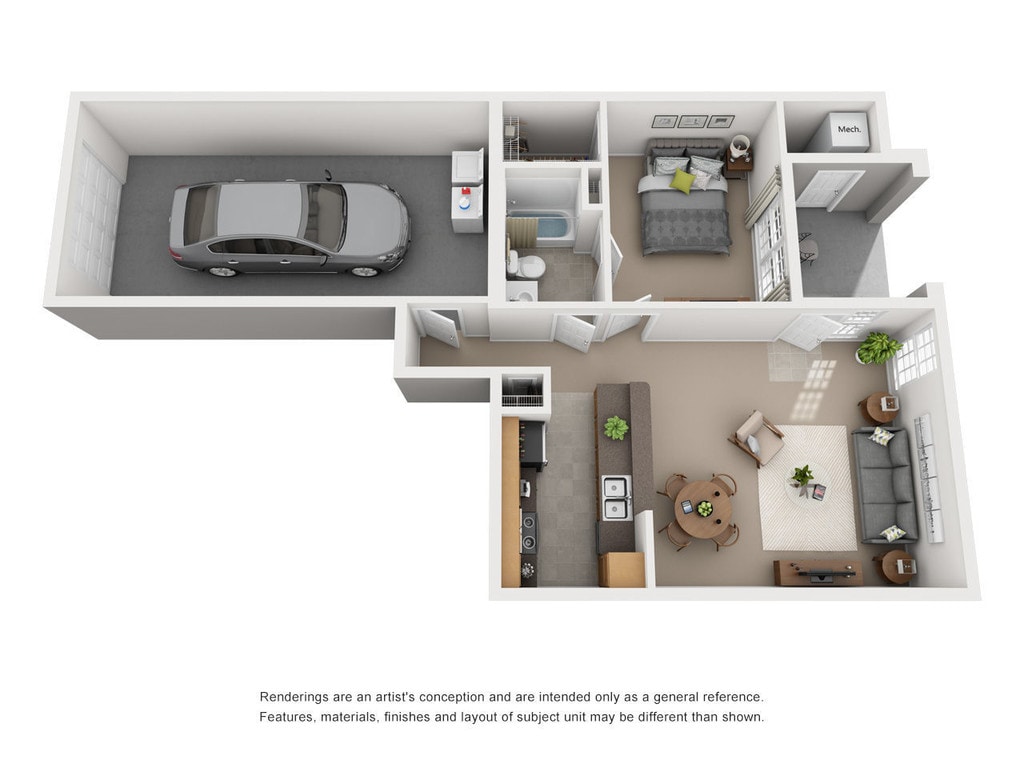 1 Dormitorio, 1 Baño, 730 pies²Galería del Modelo