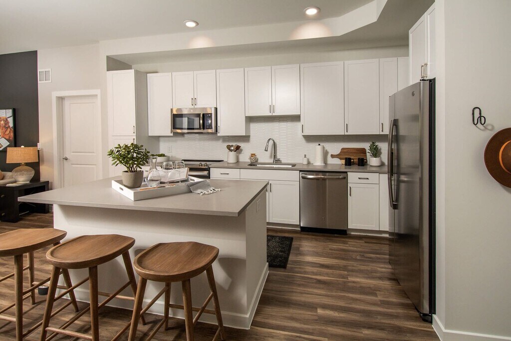 ¡Espacioso apartamento de lujo de 2 habitaciones y 2 baños! - Este hermoso apartamento de dos habitaciones y dos baños cuenta con acabados lujosos que hacen la vida más fácil y lujosa, desde elegantes electrodomésticos de acero inoxidable hasta una cocina estilo chef con isla. Disfrutarás de comodidades como amplios vestidores, lujosas habitaciones alfombradas, elegantes encimeras de cuarzo, espejos retroiluminados y una lavadora y secadora estándar. ¡Este espacio cuidadosamente diseñado tiene todo lo que deseas, justo en casa! Mira nuestro recorrido virtual, aquí: https://my.matterport.com/show/?m=w9uA5T4FRyH Ten en cuenta que el diseño que se muestra puede diferir del apartamento real. Nuestra propiedad cuenta con magníficos espacios comunitarios para que te relajes, trabajes o te diviertas. Relájate junto a nuestra piscina estilo centro turístico u organiza una noche de juegos con amigos en el Virtual Sports Center. Haz una lluvia de ideas en un entorno inspirador a través de nuestro espacio de coworking o aprende una nueva técnica de cocina en la cocina Experience. Nuestro complejo también cuenta con un patio zen, dos gimnasios, estaciones de carga para vehículos eléctricos y más. El lujo se combina con la elegancia en Aura Brewers Hill, un nuevo complejo de apartamentos de lujo en Canton, MD, que ofrece apartamentos tipo estudio, de una, dos, y tres habitaciones y casas adosadas. Si buscas una vida moderna y sofisticada que sea intrigante y acogedora, Aura Brewers Hill es el lugar para ti. (RLNE7159330)