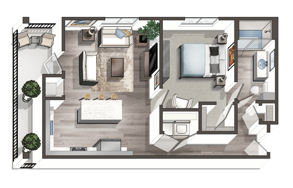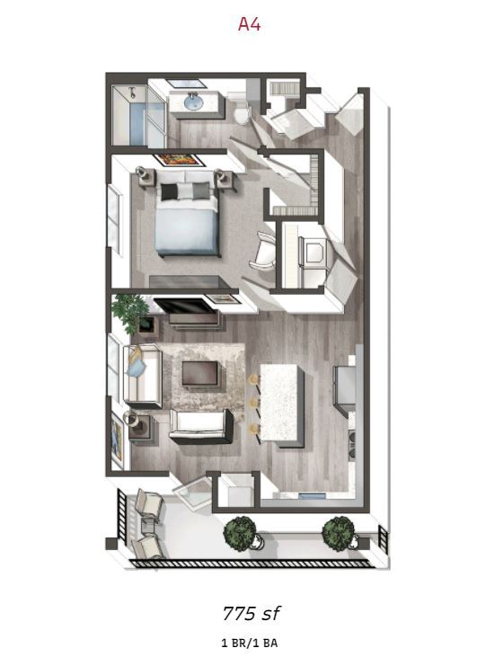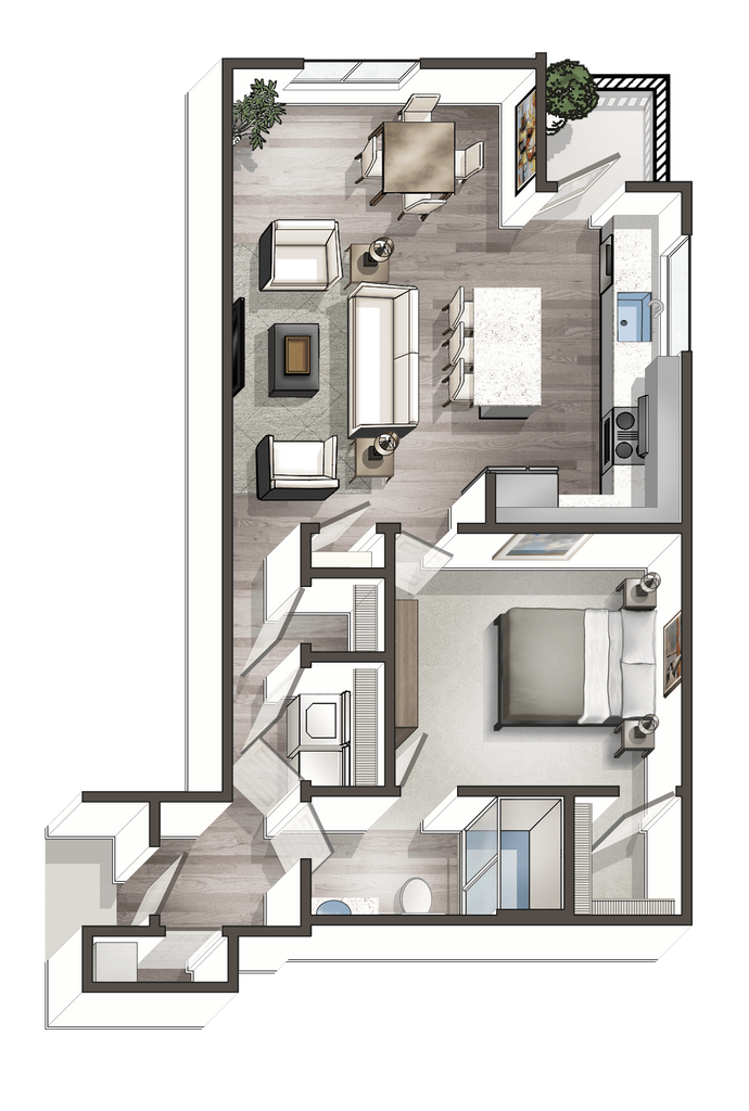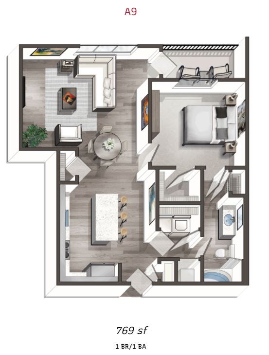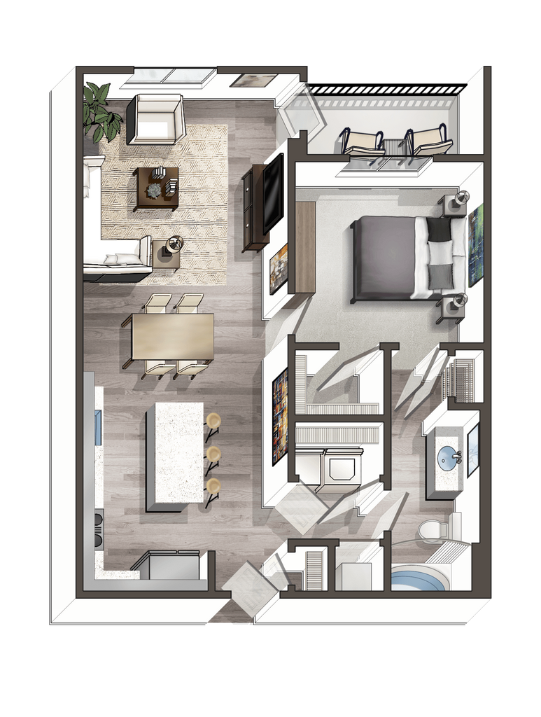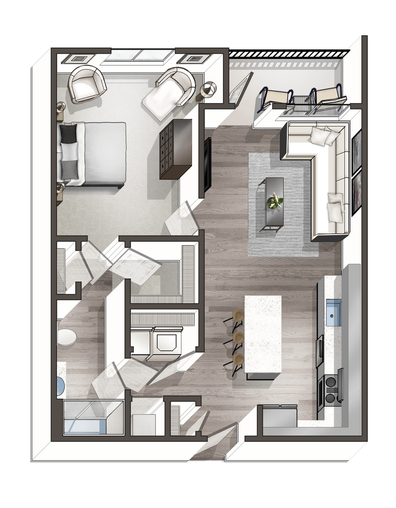 1 Dormitorio, 1 Baño, 751 pies²Disponible AhoraGalería del Modelo