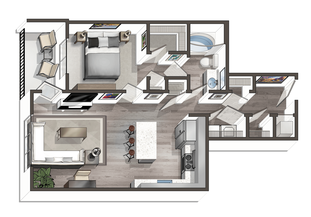 1 Dormitorio, 1 Baño, 577-609 pies²Galería del Modelo