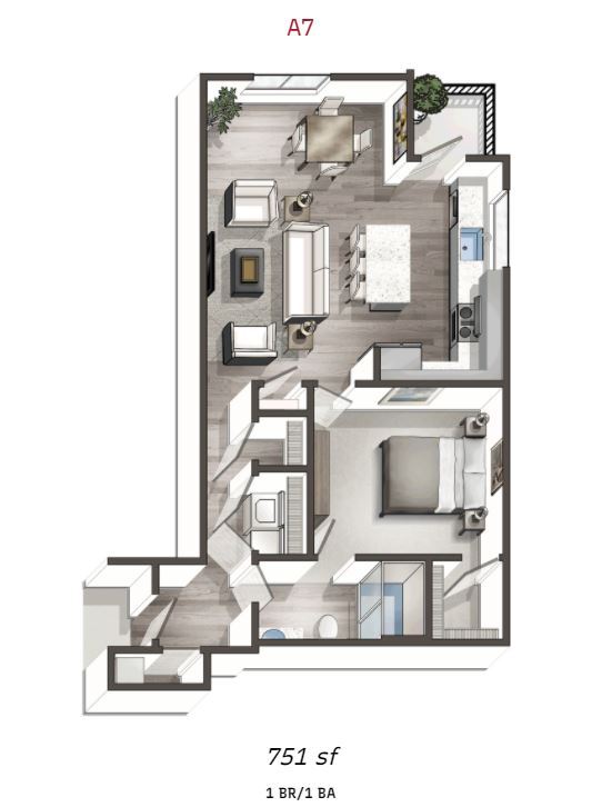 A7 - Plano 2 Unidad de apartamento: 4241-111Modelo de apartamento: A7$1,1991 Dormitorio, 1 Baño, 751 sq ftDisponible AhoraPlano: A8
