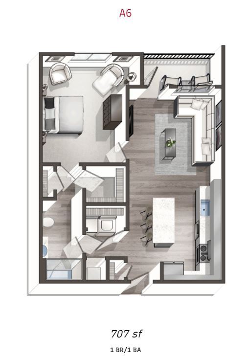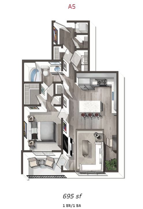 Modelo de apartamento: A5$1,1991 Dormitorio, 1 Baño, 695 sq ftDisponible December 13, 2025PlanosFotos![]()