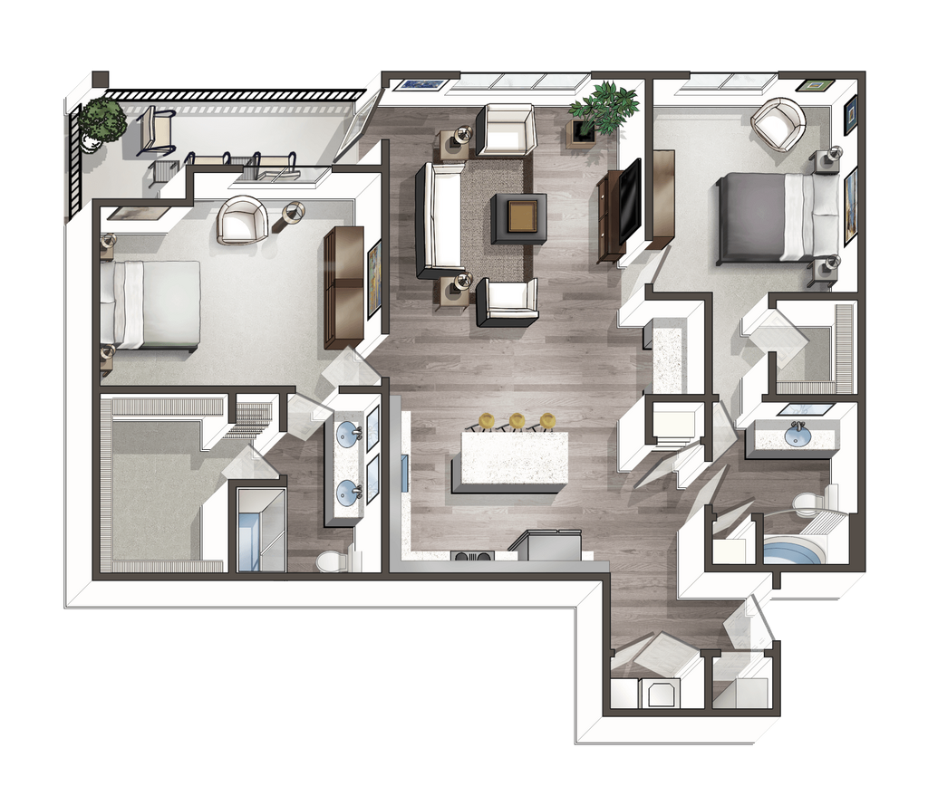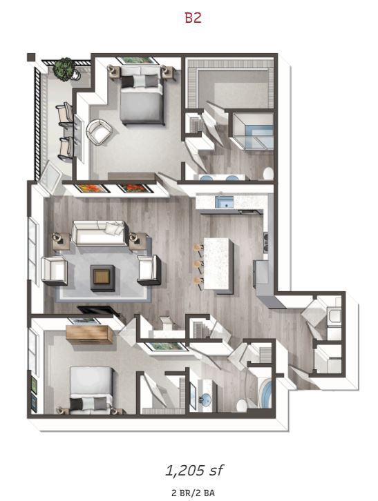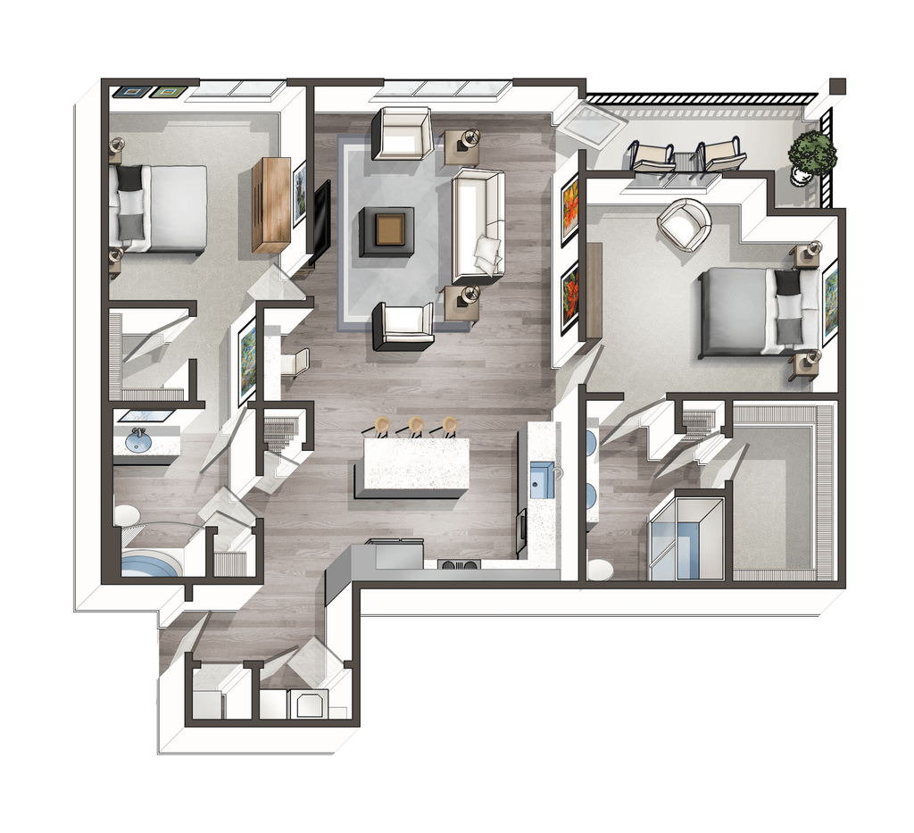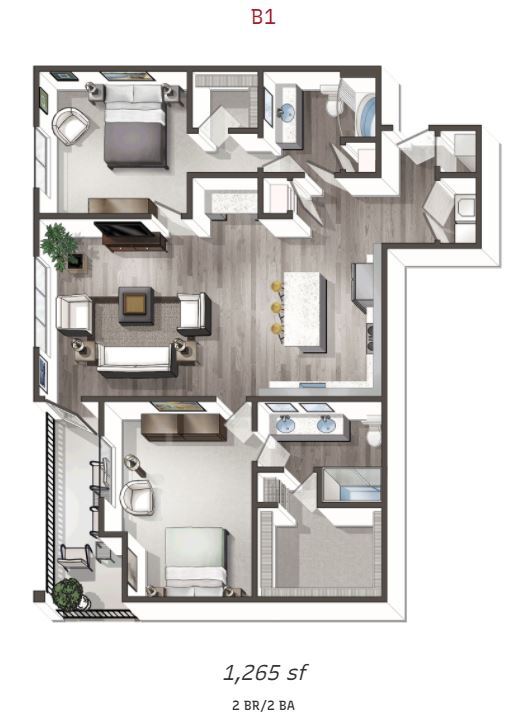 Modelo de apartamento: A8Desde $1,2491 Dormitorio, 1 Baño, 733 sq ftDisponible Ahora![]()