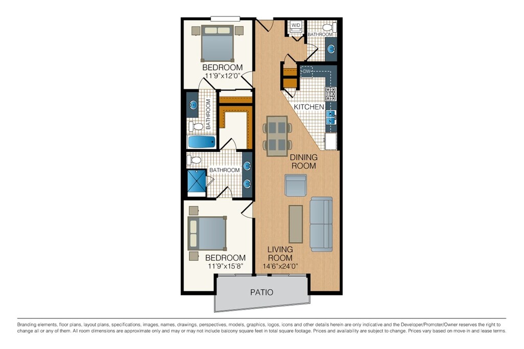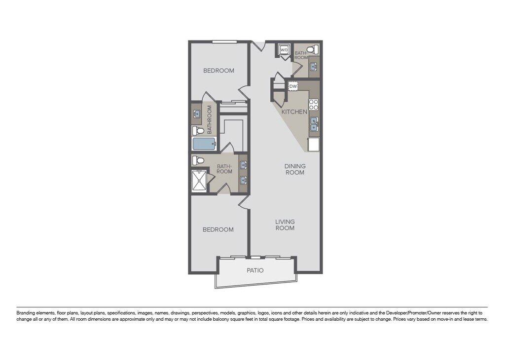 Modelo de apartamento: 22AA$3,7002 Dormitorios, 2.5 Baños, 1312 sq ftNo Disponible![]()