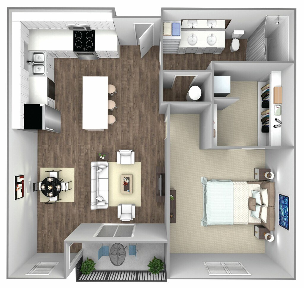 1 Dormitorio, 1 Baño, 851 pies²Disponible AhoraGalería del Modelo