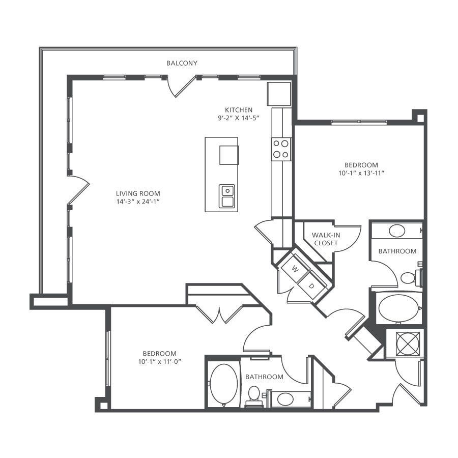 Modelo de apartamento: Radius$1,261Estudio, 1 Baño, 702-723 sq ftDisponible Ahora![]()