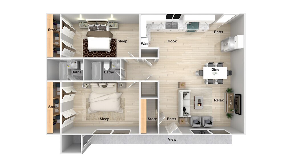 Modelo de apartamento: 2 BD 2 BADesde $9492 Dormitorios, 2 Baños, 1095 sq ftDisponible Ahora![]()