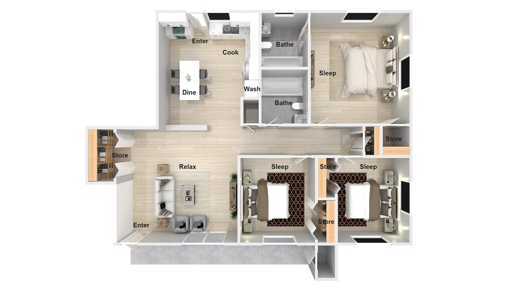 Modelo de apartamento: 3 BD 2 BADesde $1,0493 Dormitorios, 2 Baños, 1175 sq ftDisponible Ahora![]()