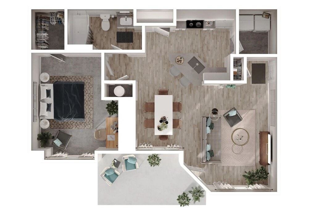 1 Dormitorio, 1 Baño, 885 pies²Disponible AhoraGalería del Modelo