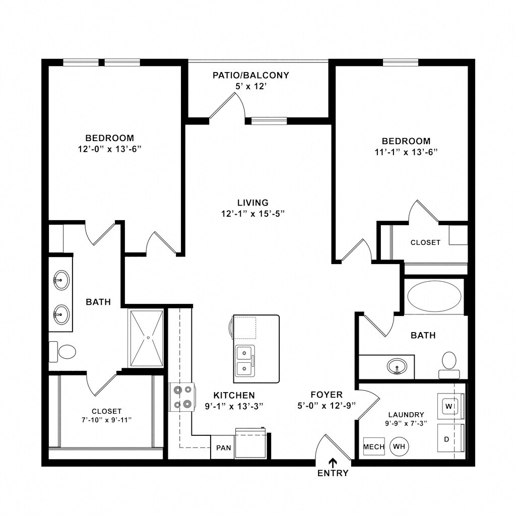 Modelo de apartamento: A2$1,5251 Dormitorio, 1 Baño, 816 sq ftDisponible January 14, 2026PlanosFotos![]()