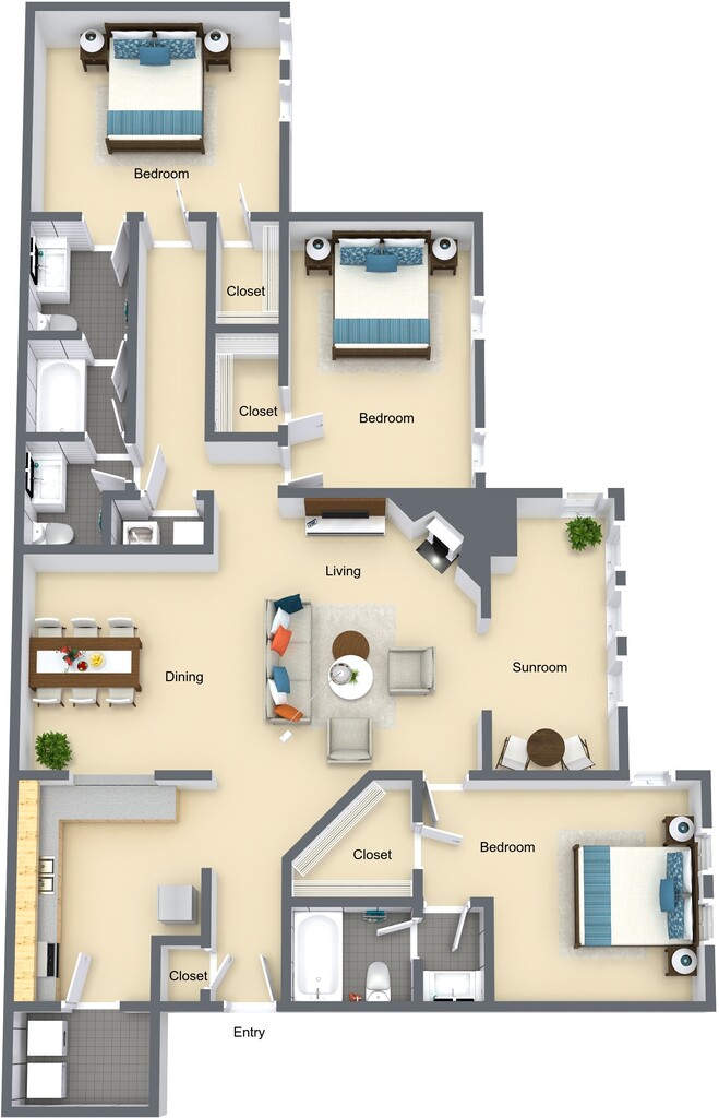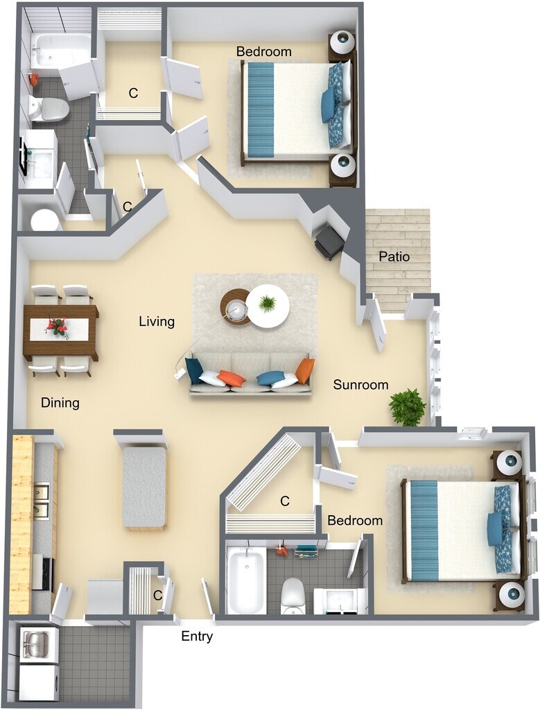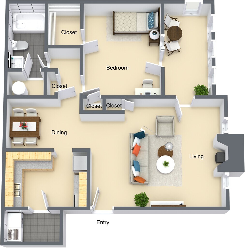 Modelo de apartamento: GardeniaDesde $1,1751 Dormitorio, 1 Baño, 900 sq ftDisponible Ahora![]()