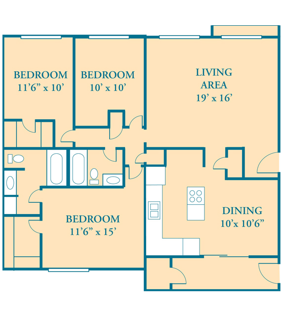 Modelo de apartamento: 3 Bed/2 Bath3 Dormitorios, 2 Baños, 1366 sq ftNo Disponible![]()