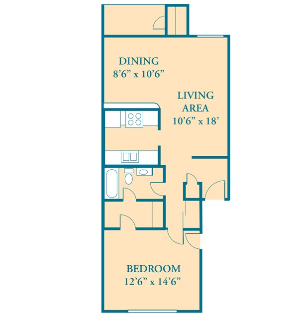 1 Bed/1 Bath - Plano 1 2 Dormitorios