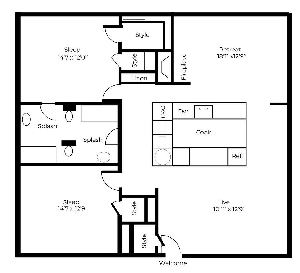Modelo de apartamento: Three BedroomLlame para Precios3 Dormitorios, 2 Baños, 1382 sq ftNo Disponible![]()