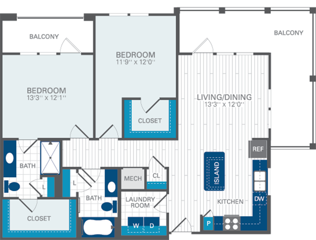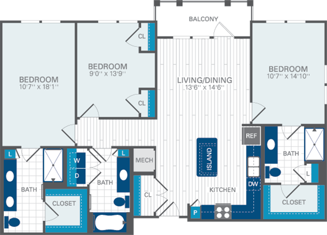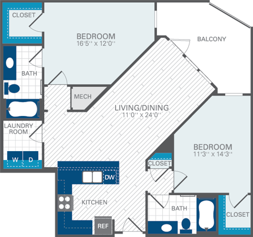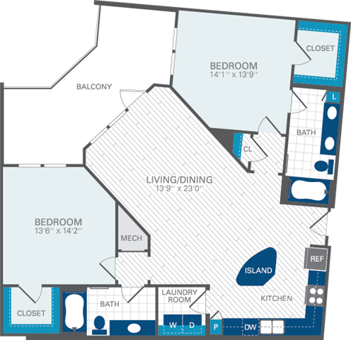 Modelo de apartamento: A3Desde $1,8411 Dormitorio, 1 Baño, 771-846 sq ftDisponible Ahora![]()