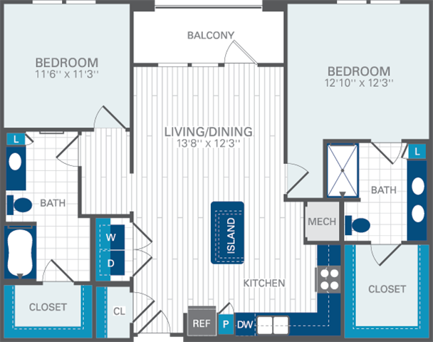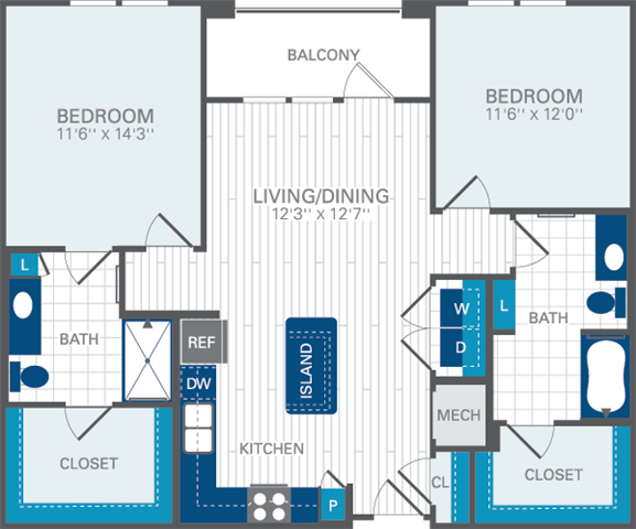 Modelo de apartamento: A2Desde $1,8041 Dormitorio, 1 Baño, 705-729 sq ftDisponible January 2, 2026![]()