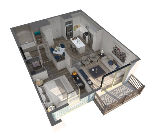 Modelo de apartamento: Amelia - 1 Bed, 1 Bath1 Dormitorio, 1 Baño, 864 sq ftDisponible June 15, 2026![]()