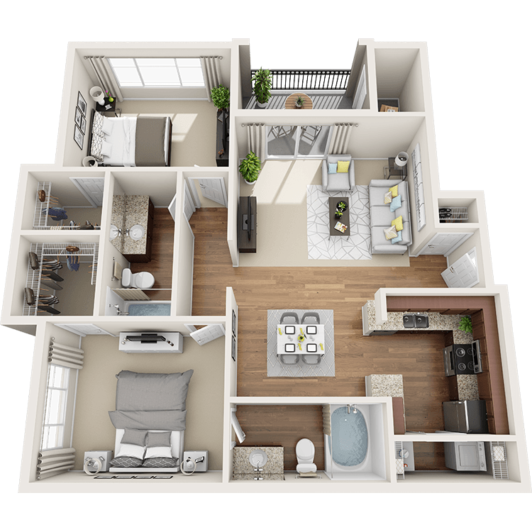 1 Dormitorio, 1 Baño, 850 pies²Disponible AhoraGalería del Modelo