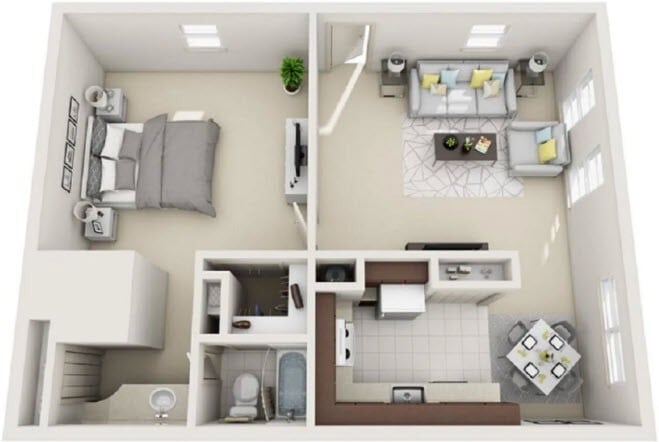 1 Dormitorio, 1 Baño, 675 pies²Disponible Jun 15Galería del Modelo