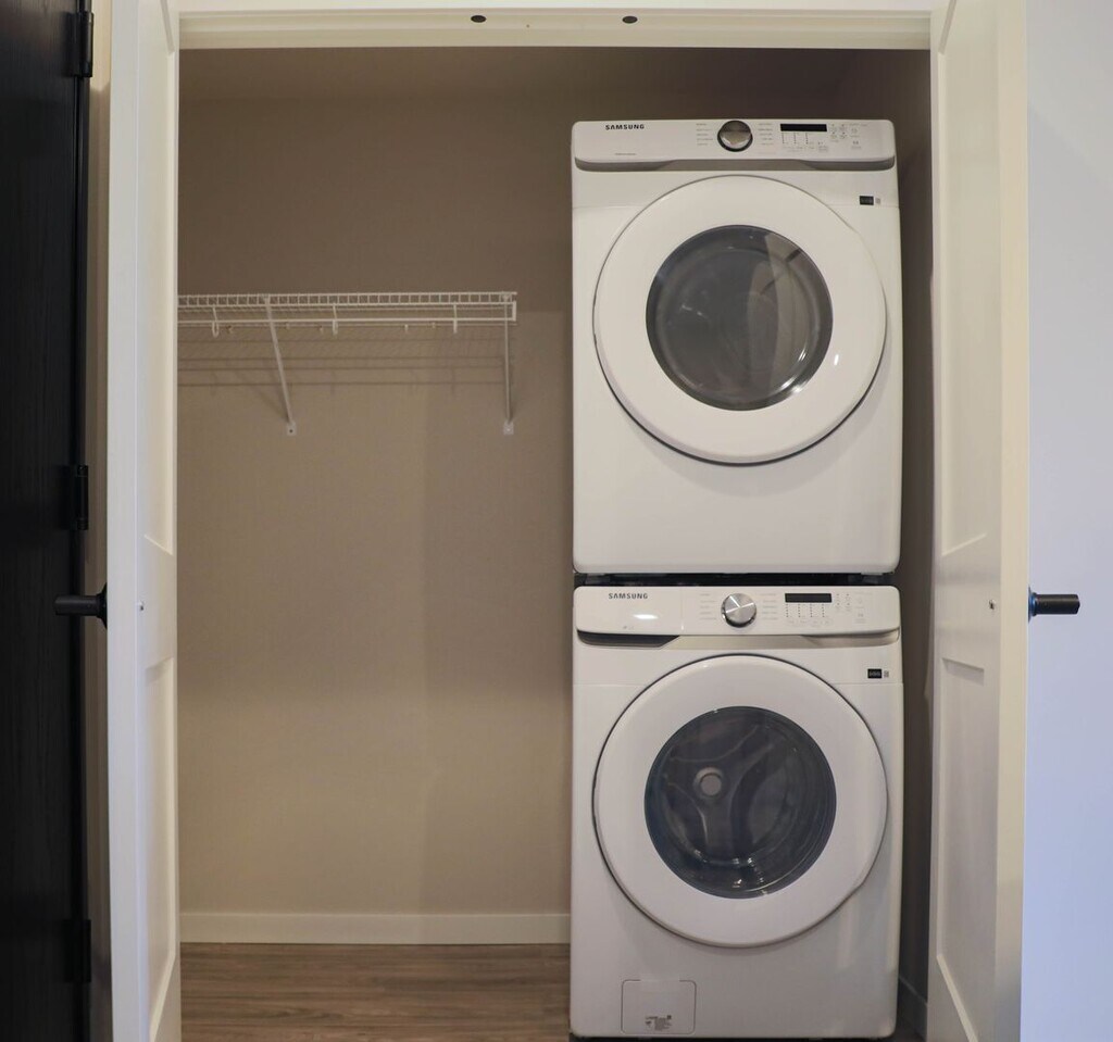 - Lavadora y secadora de tamaño completo en la unidad