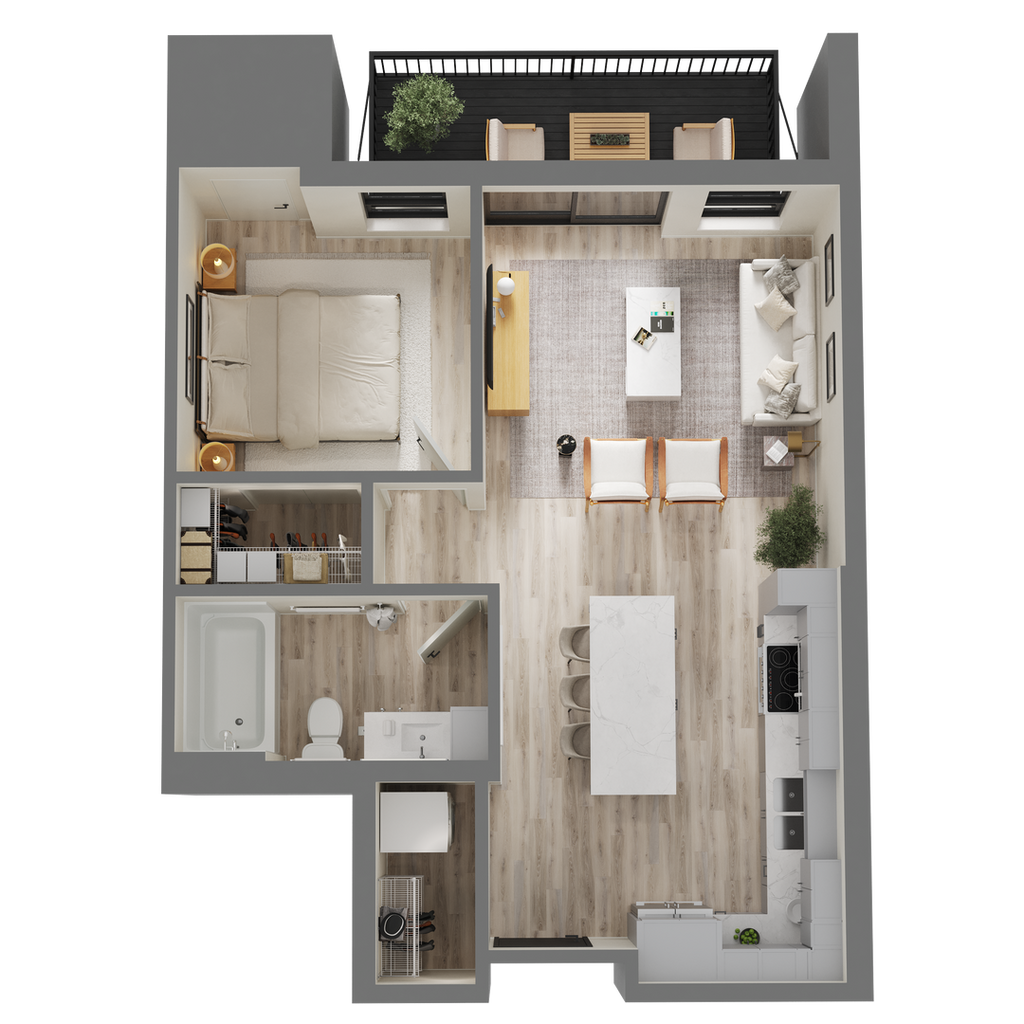 1 Dormitorio, 1 Baño, 681 pies²Disponible AhoraGalería del Modelo