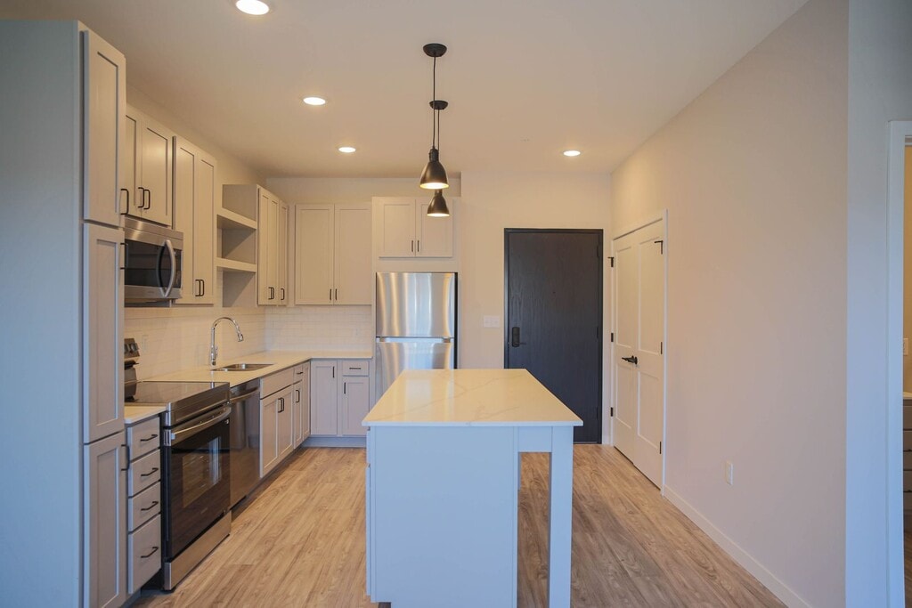 Experience luxury living in the heart of Downtown Eau Claire in one of the newest and most modern apartment communities that the city has to offer. Upon entering, you are welcomed into a life of lavish living with hard surface countertops, LVT flooring, 9-foot ceilings, contemporary light fixtures with LED lighting, stainless steel appliances, oversized windows with black out shades and in-unit laundry. Relax in the exquisite second floor community lounge that is equipped with a pool table, flatscreen tv, kitchenette and plenty of seating. Take a step outside to the rooftop patio and enjoy outdoor seating with a large grilling area or find yourself in the Bark Park with your furry friends.