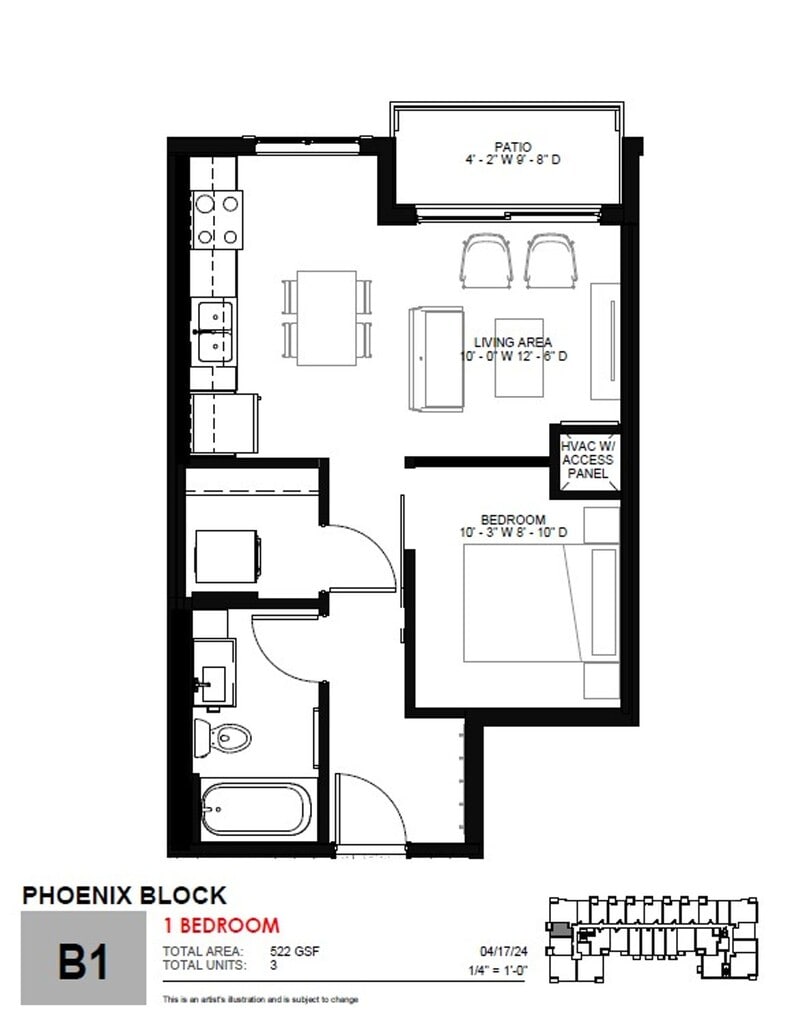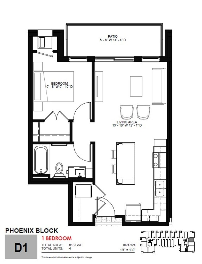1 Dormitorio, 1 Baño, 575 pies²Disponible AhoraGalería del Modelo
