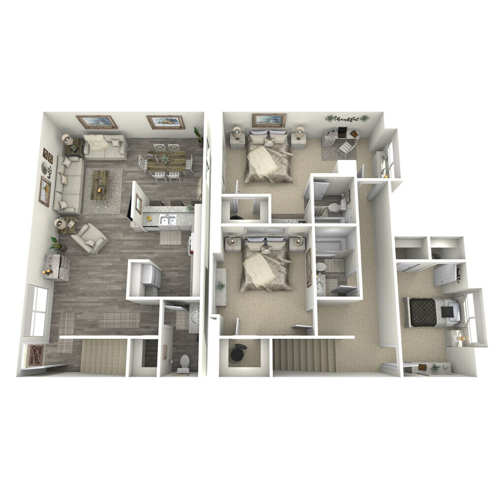Modelo de apartamento: C1$1,5523 Dormitorios, 2.5 Baños, 1417 sq ftNo Disponible![]() - C1 - Plano 1