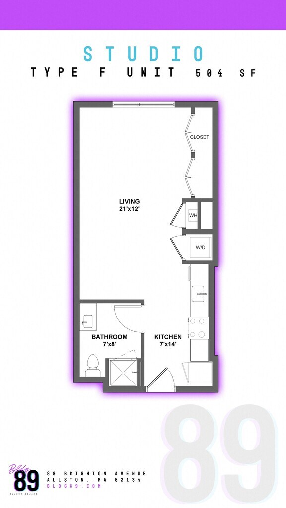 BLDG 89 se encuentra en el código postal 02134 de Boston, MA. Esta comunidad está gestionada profesionalmente por Brighton Gardner Properties LLC