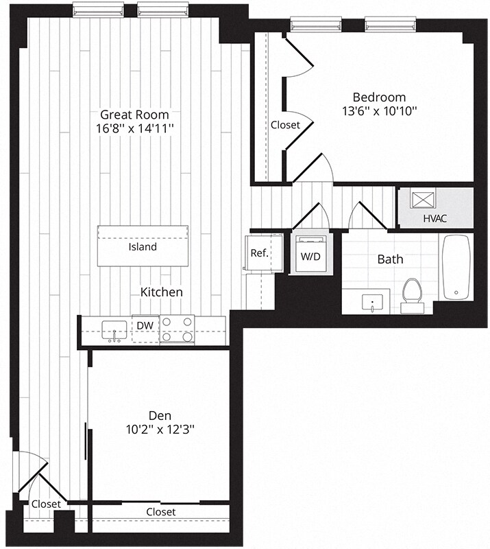 Modelo de apartamento: 1 BR 1GDesde $2,2261 Dormitorio, 1 Baño, 702 sq ftDisponible AhoraPlanosFotos![]()