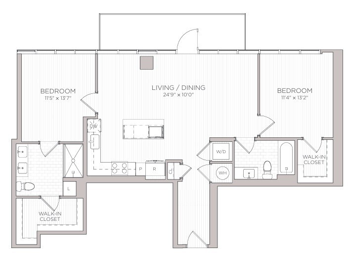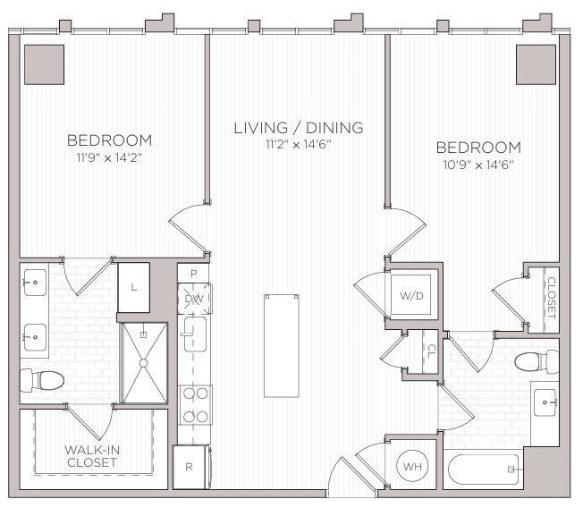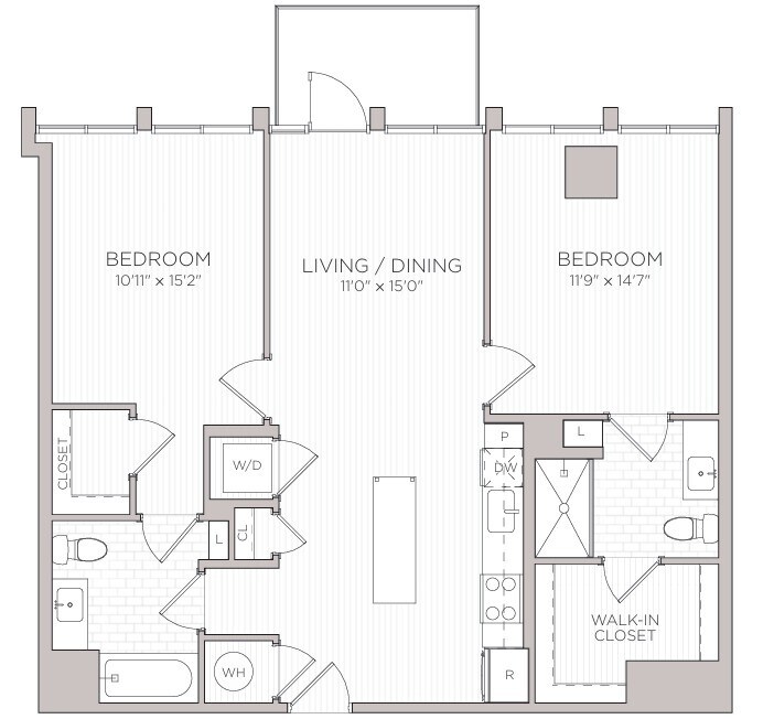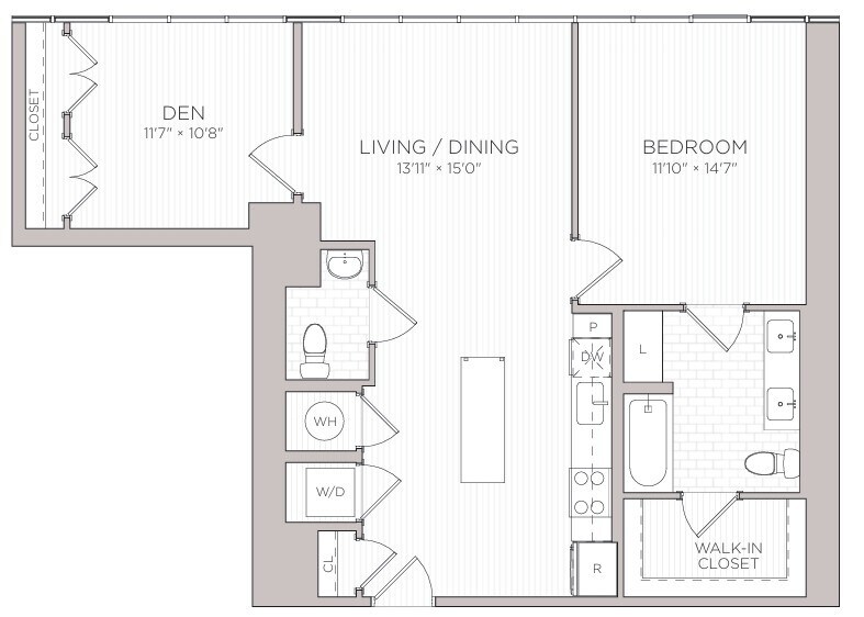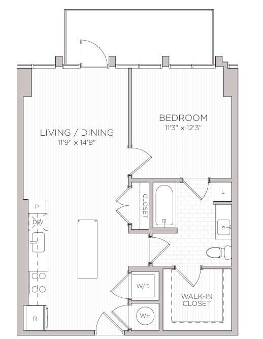 Modelo de apartamento: A9 WDU 70%$2,0321 Dormitorio, 1 Baño, 728 sq ftDisponible Ahora![]()