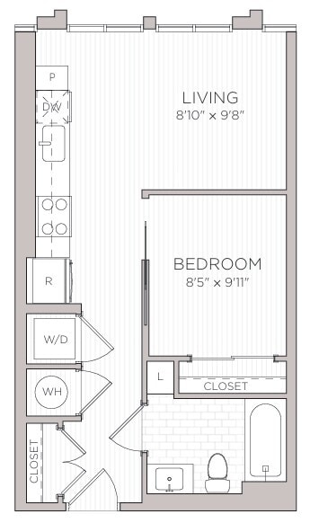 Modelo de apartamento: S1 WDU 100%Desde $2,151Estudio, 1 Baño, 498 sq ftDisponible Ahora![]()