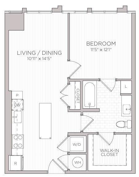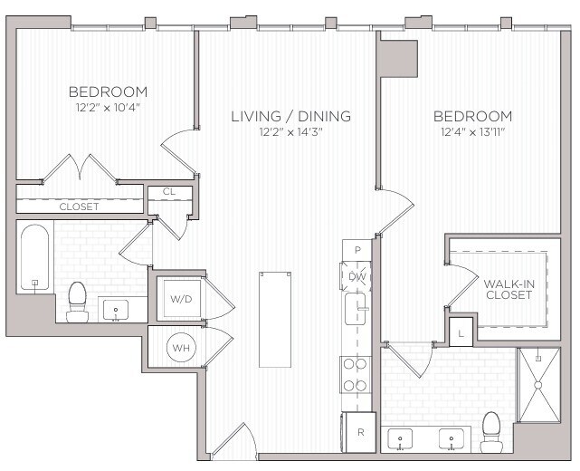 Modelo de apartamento: A5 WDU 70%$2,0321 Dormitorio, 1 Baño, 696 sq ftDisponible Ahora![]()