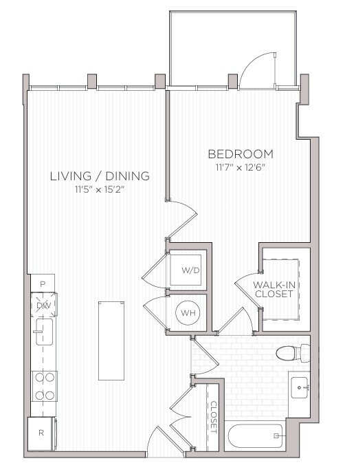 Modelo de apartamento: A7 WDU 70%$2,0321 Dormitorio, 1 Baño, 727 sq ftDisponible Ahora![]()
