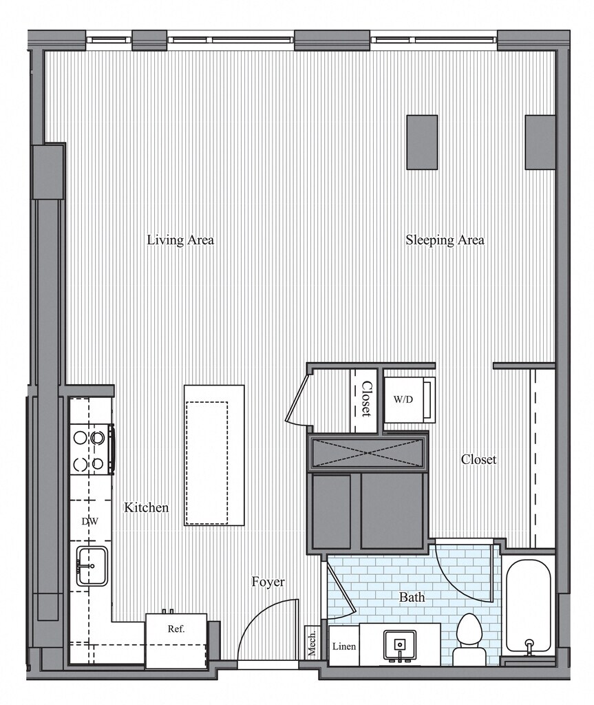 Studio H - Plano Unidad de apartamento: 1804Modelo de apartamento: Studio H$2,142Estudio, 1 Baño, 555 sq ftDisponible AhoraStudio B