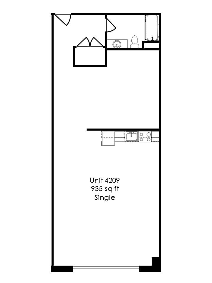 Modelo de apartamento: SingleDesde $1,2551 Dormitorio, 1 Baño, 705-935 sq ftDisponible Ahora![]()