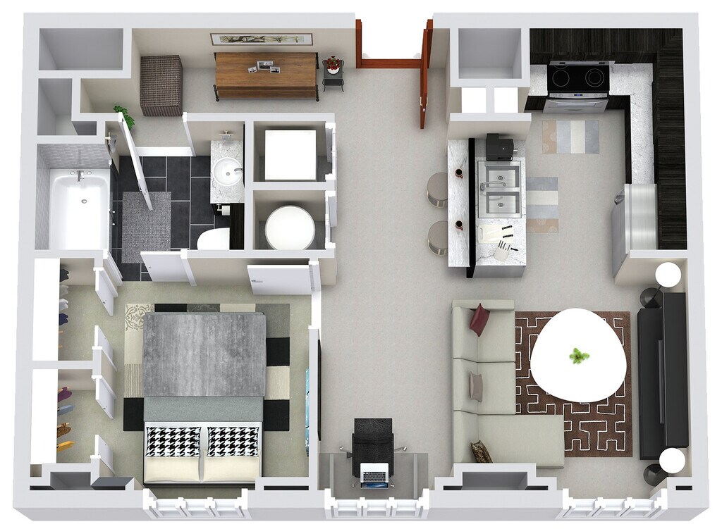1 Dormitorio, 1 Baño, 601 pies²Disponible AhoraGalería del Modelo