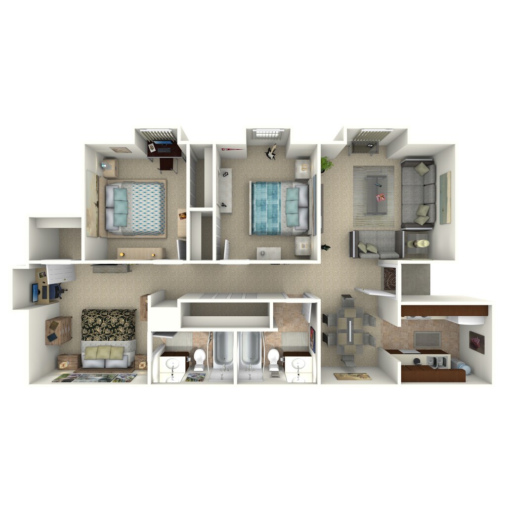 Modelo de apartamento: C1R$1,8803 Dormitorios, 2 Baños, 1045 sq ftNo Disponible![]() - C1R - Plano 1