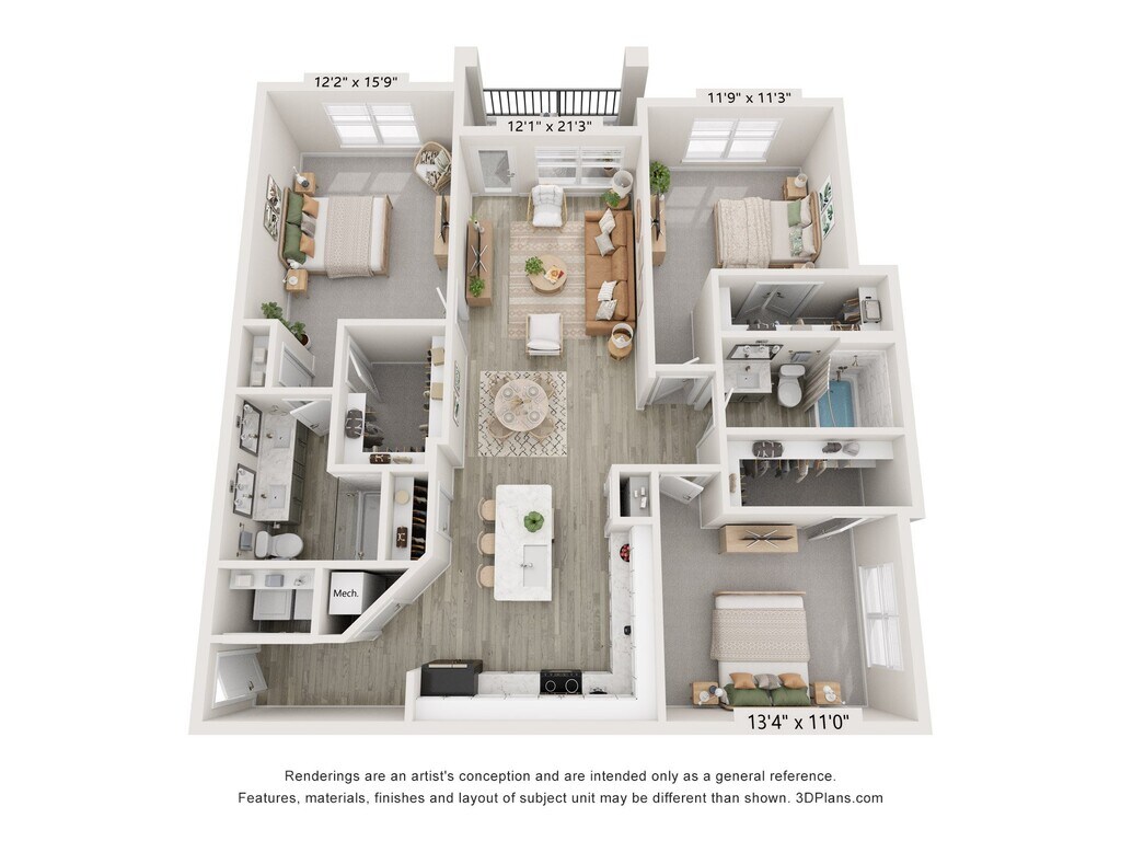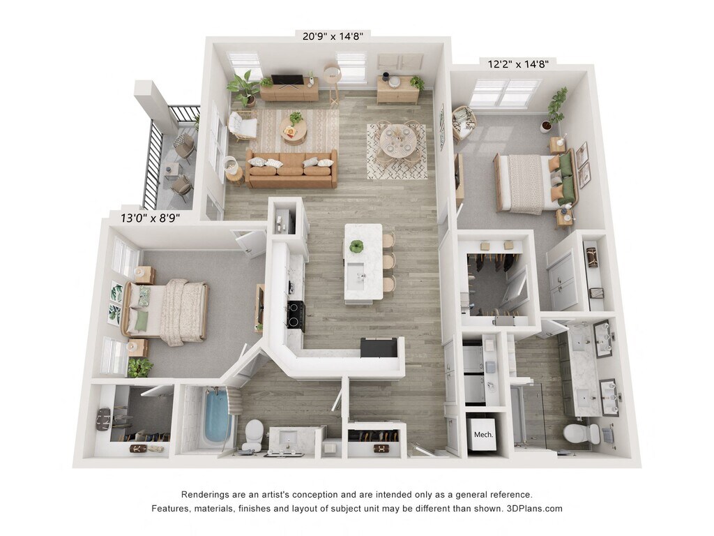 Modelo de apartamento: B2Desde $2,0362 Dormitorios, 2 Baños, 1207 sq ftDisponible Ahora![]()