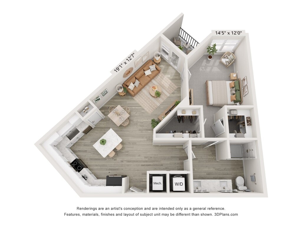 Modelo de apartamento: A1Desde $1,8461 Dormitorio, 1 Baño, 954-1002 sq ftDisponible Ahora![]()