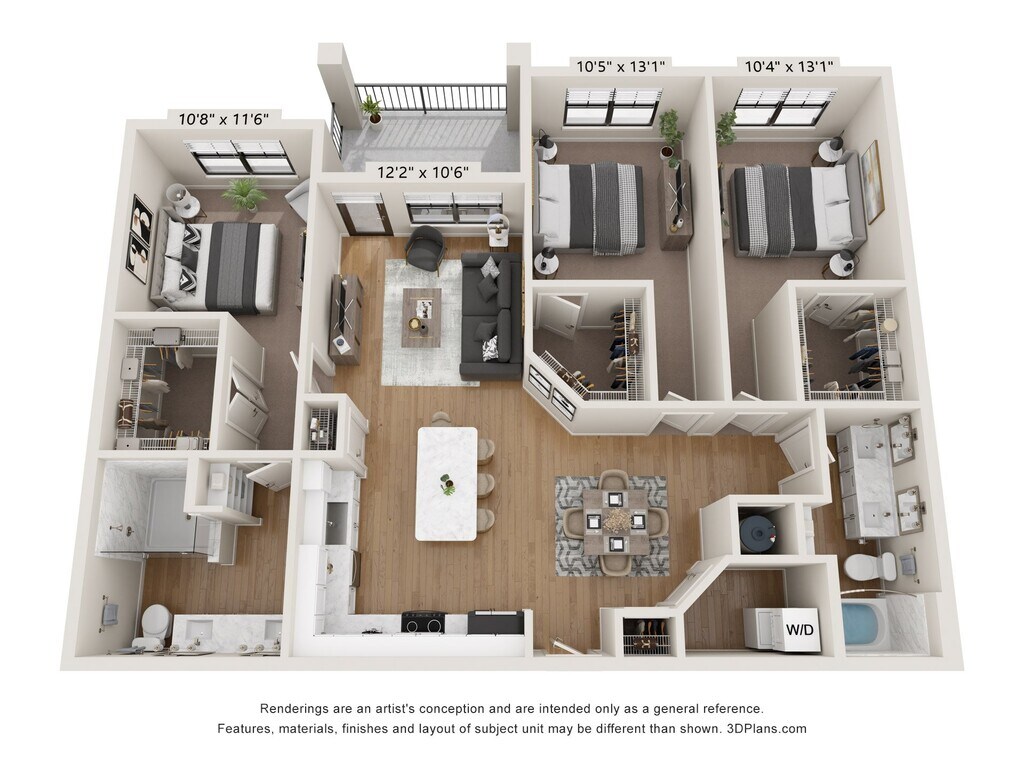 Modelo de apartamento: A3Llame para Precios1 Dormitorio, 1 Baño, 868 sq ftNo Disponible![]()