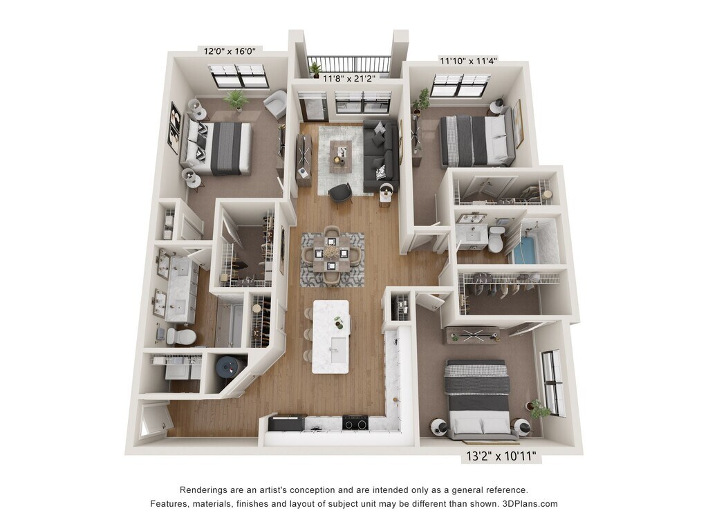 Modelo de apartamento: B2Desde $2,2802 Dormitorios, 2 Baños, 1179 sq ftDisponible Ahora![]()