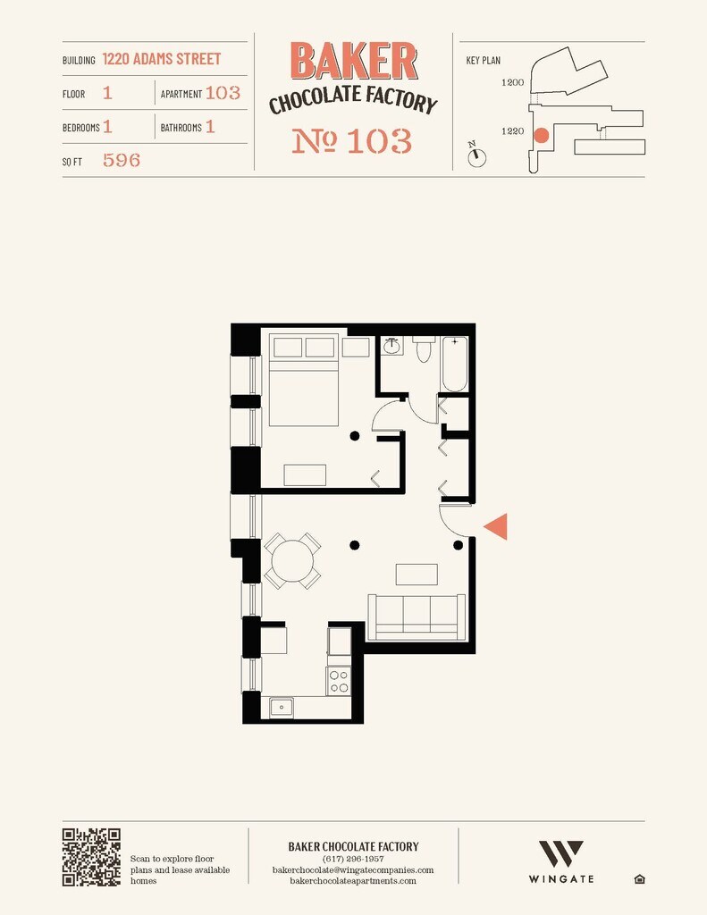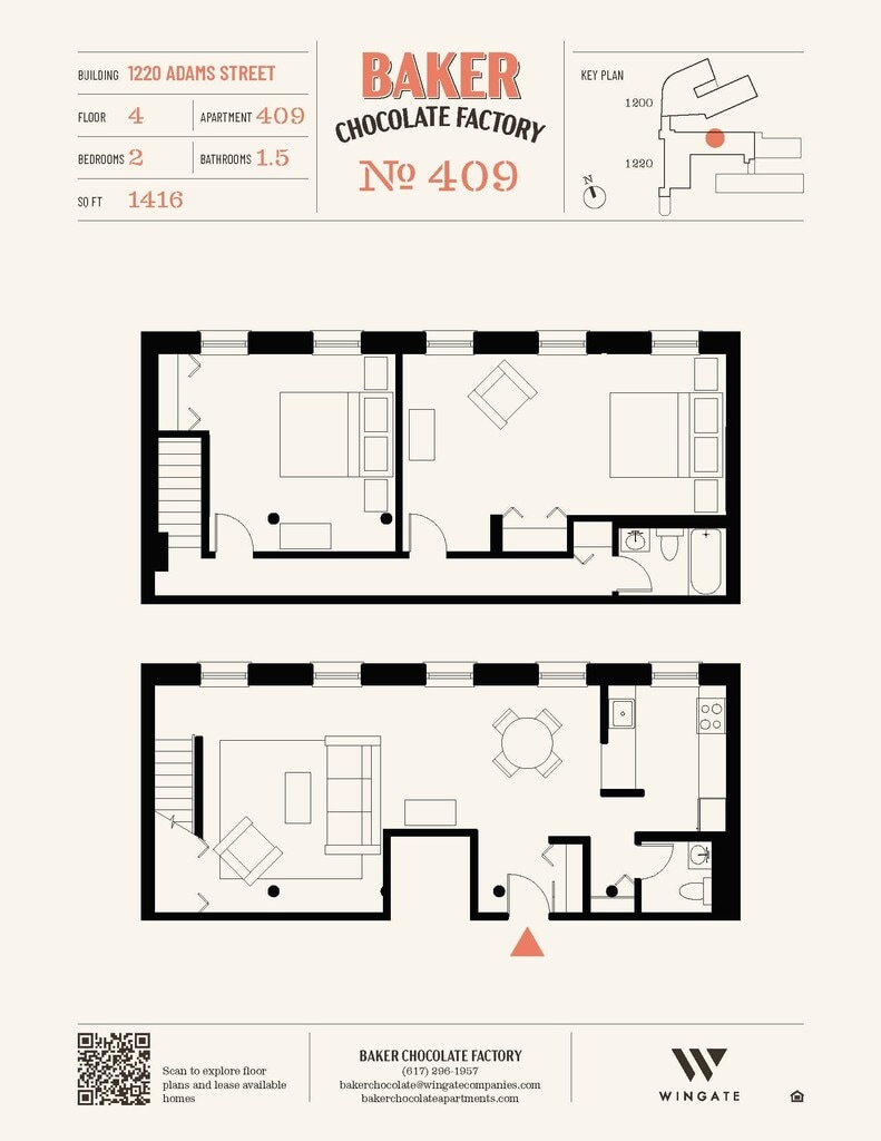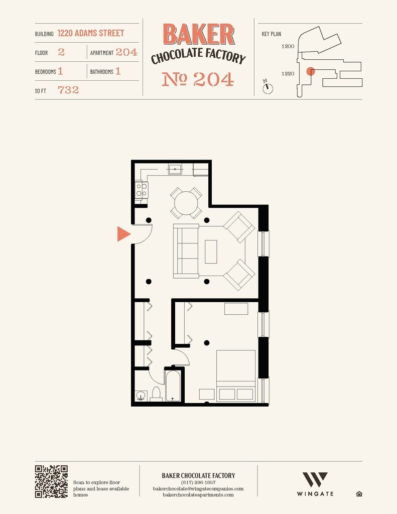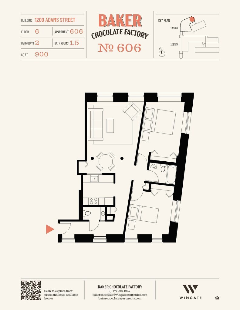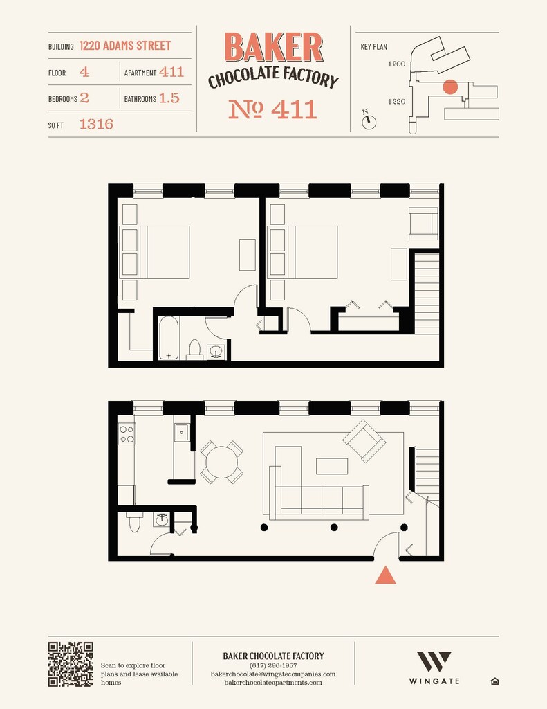 Baker Chocolate Factory ofrece apartamentos de Estudio a 2 Dormitorios desde $2,250 con 522–1,316 pies cuadrados. Aquí está el precio actual y la disponibilidad:
