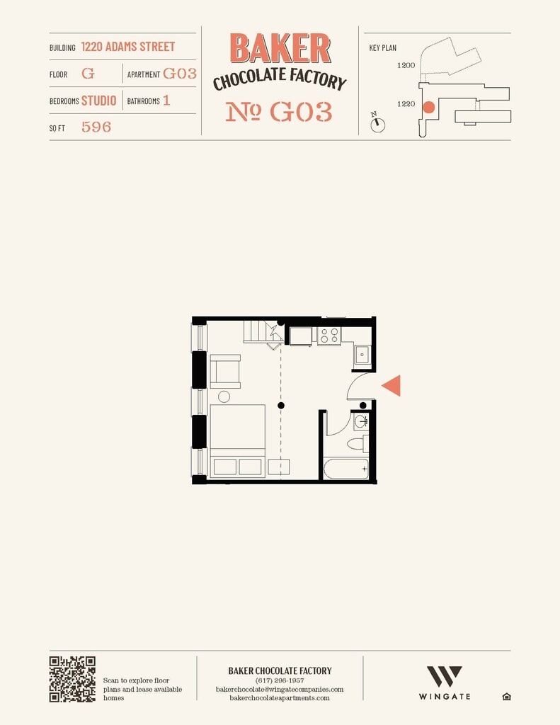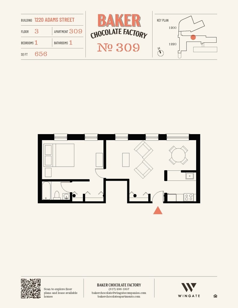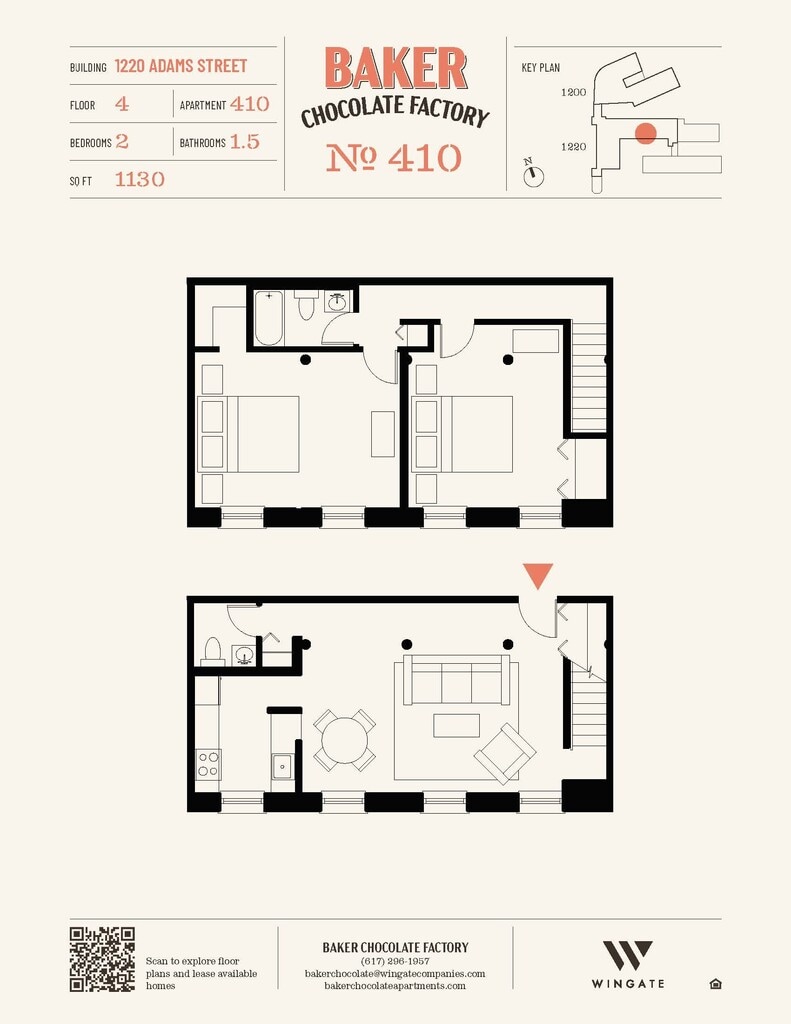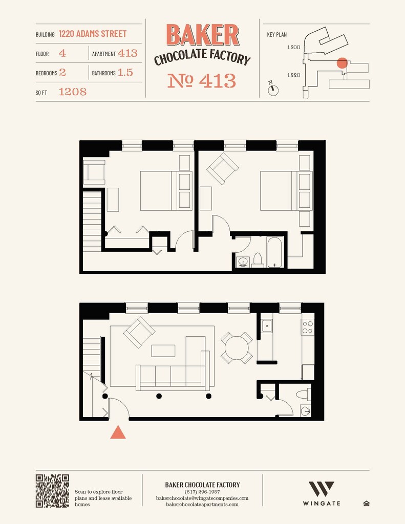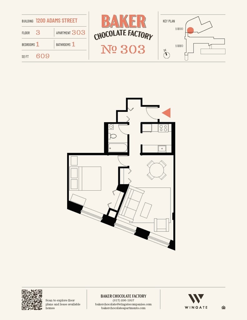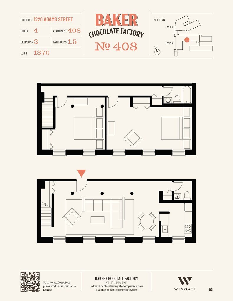 Baker Chocolate Factory ofrece apartamentos de Estudio a 2 Dormitorios desde $2,250 con 522–1,316 pies cuadrados. Aquí está el precio actual y la disponibilidad: