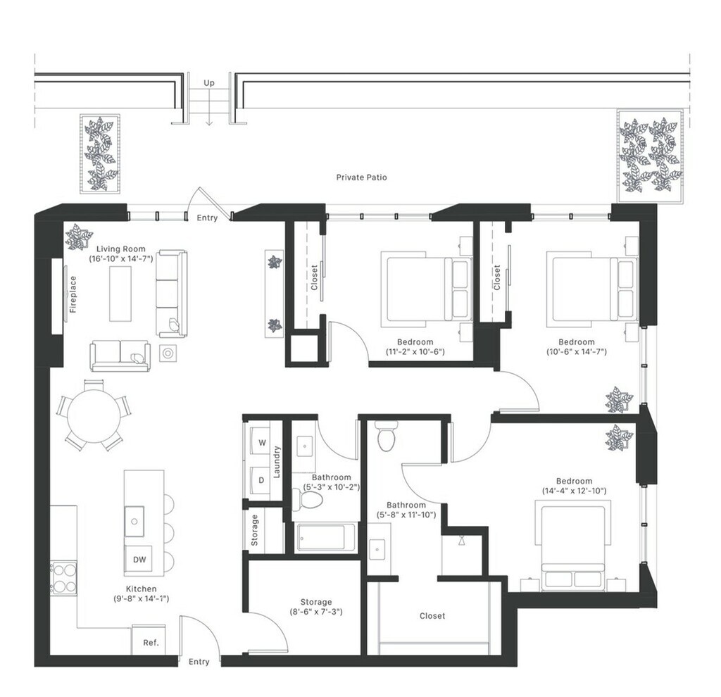 Modelo de apartamento: TH 3.23 Dormitorios, 3 Baños, 1871 sq ftNo Disponible![]()