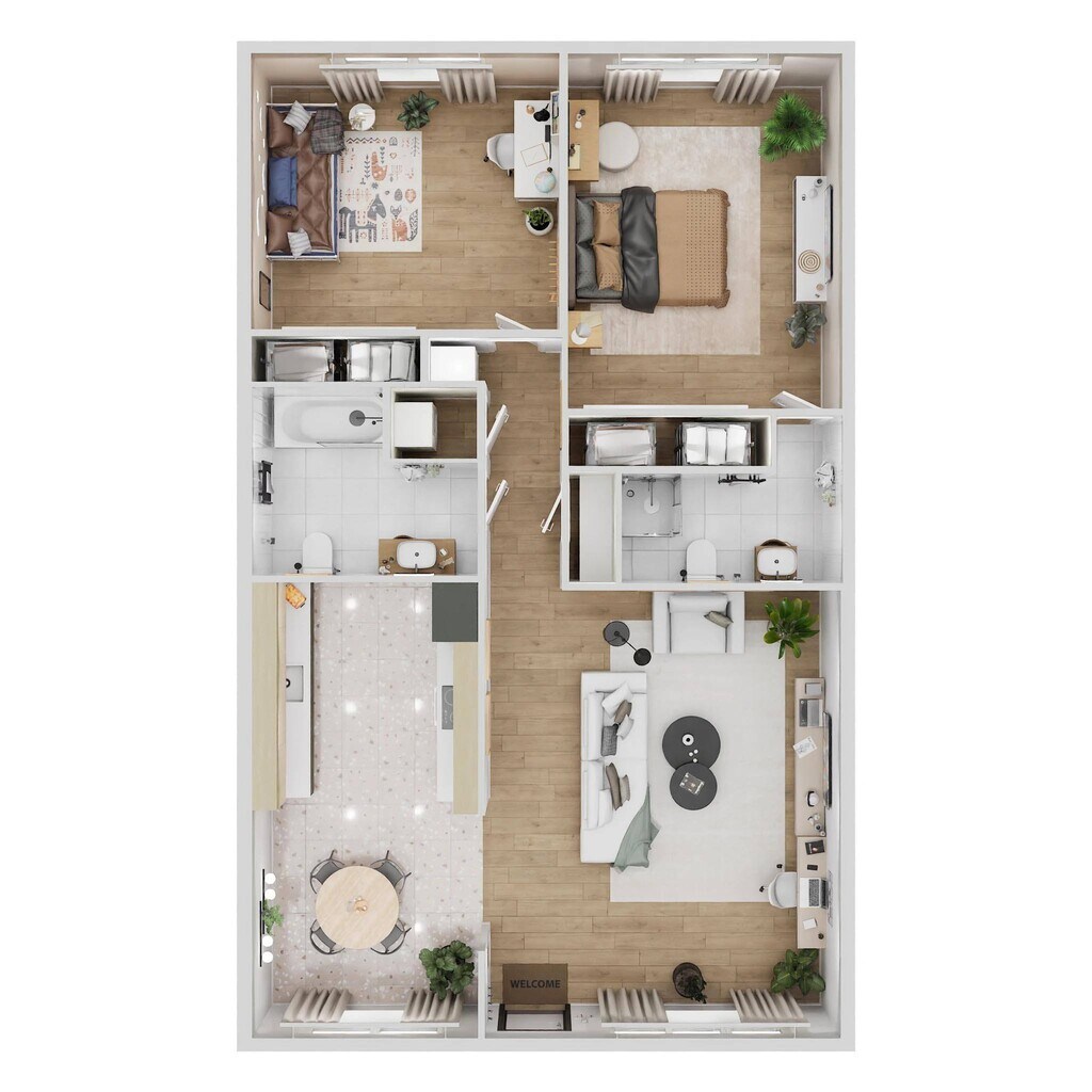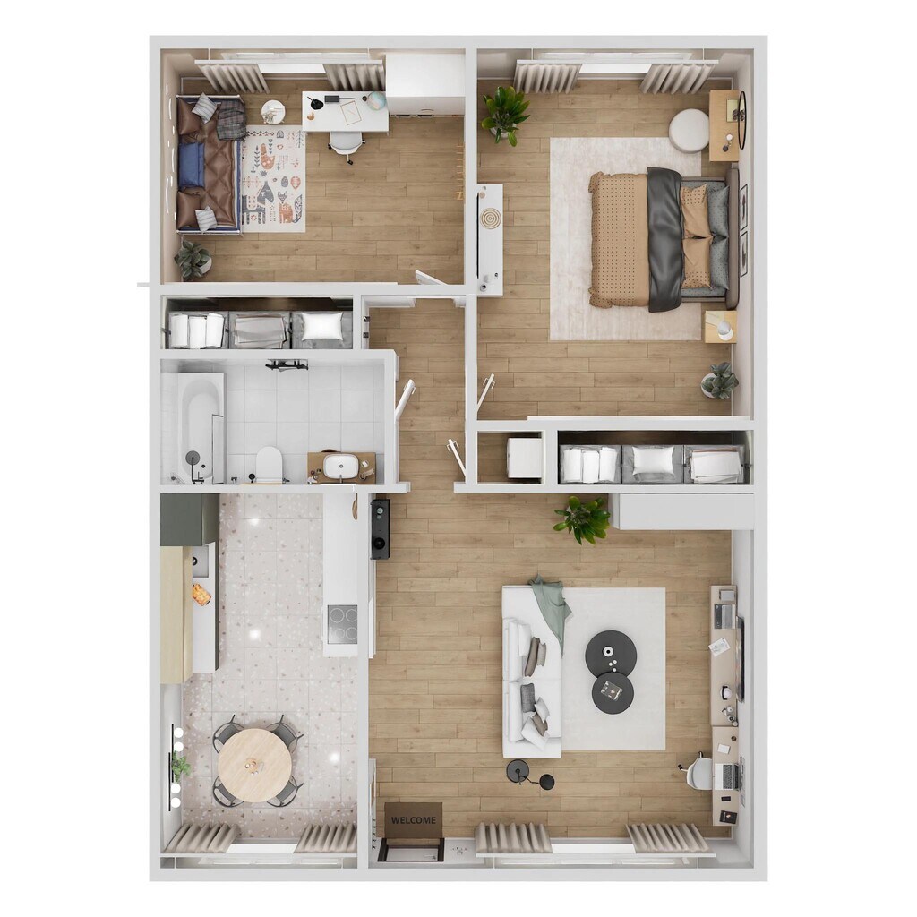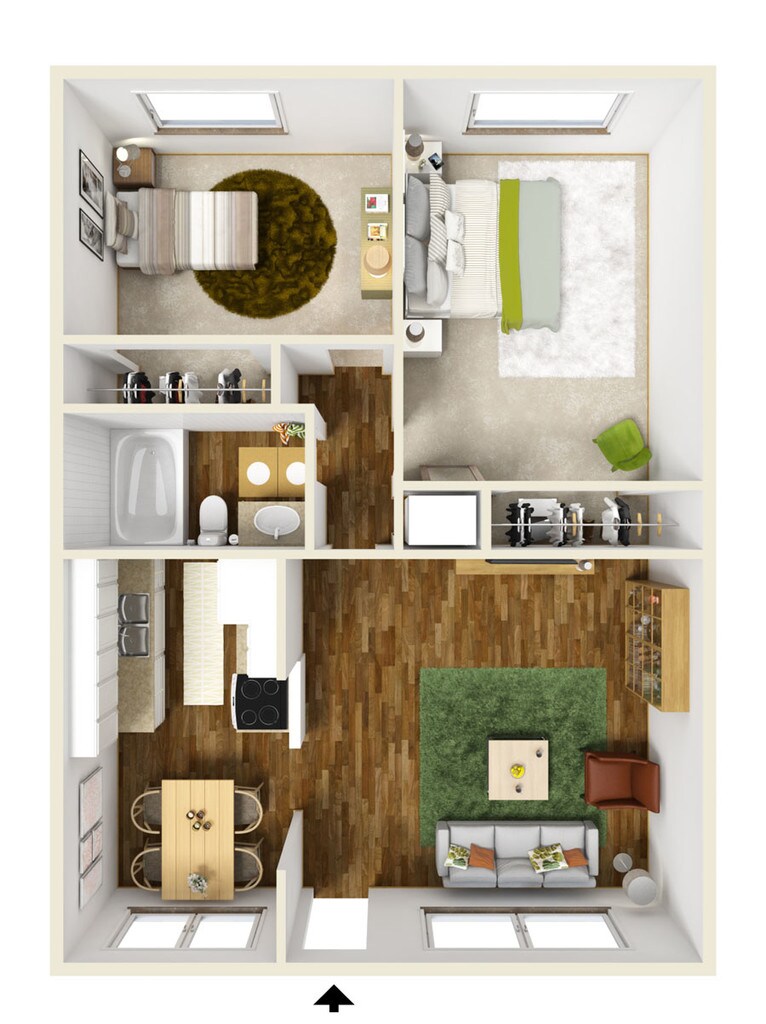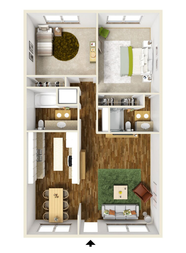 2 Dormitorios, 1 Baño, 861-975 pies²Galería del Modelo